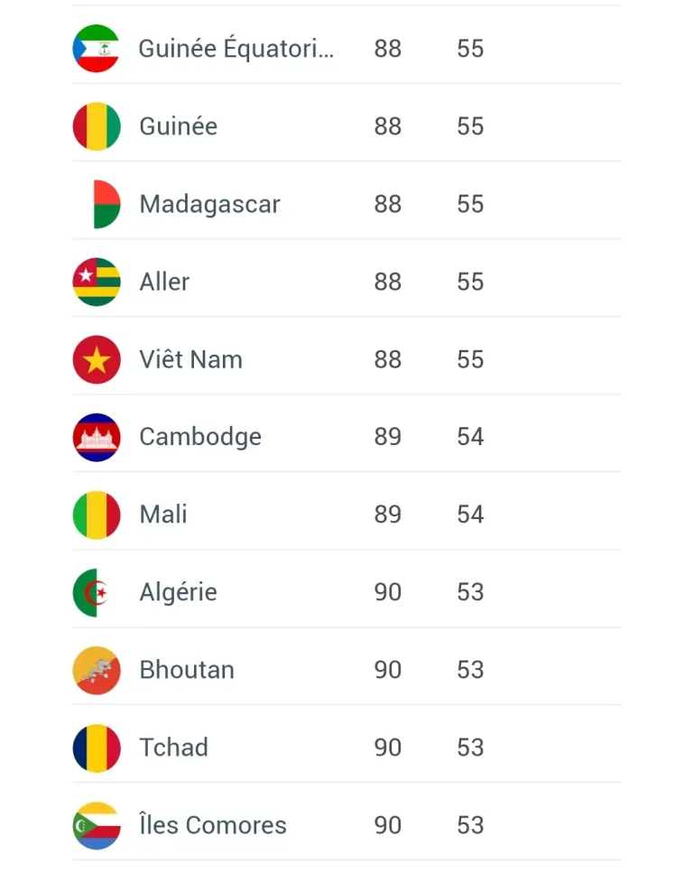 En revanche, en bas du tableau on retrouve 10 autres pays (tous d’Asie)