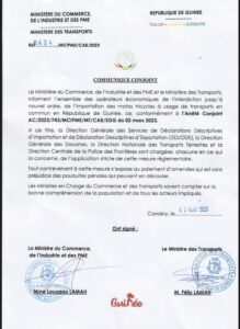 Le gouvernement guinéen à travers le ministère du commerce de l’industrie et des PME et le ministère des transports vient en effet de signé conjointement un document interdisant l’importation des motos tricycles à usage de transport en commun.