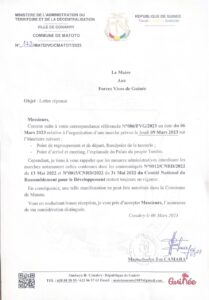 Ci-dessous lettre réponse du Maire Tos Camara :