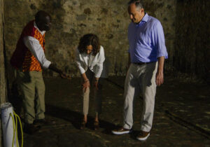 « Il y a des donjons ici où des êtres humains ont été gardés – hommes, femmes et enfants. Ils ont été kidnappés à leur domicile. Ils ont été transportés à des centaines de kilomètres de chez eux, sans vraiment savoir où ils allaient », a-t-elle ajouté. « Et ils sont venus dans ce lieu d’horreur – certains pour mourir, beaucoup pour mourir de faim et être torturés, des femmes pour être violées – avant d’être ensuite emmenés de force dans un voyage à des milliers de kilomètres de chez eux pour être vendus par de soi-disant marchands et emmené aux Amériques, dans les Caraïbes pour être un peuple asservi.