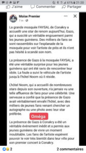 Les cris « Gazo Gazo » poussaient de partout jusque dans l’enceinte de la mosquée alors qu’il avait effectué sa prière sur l’esplanade de la mosquée. Selon son staff, l’artiste était allé saluer l’imam de la mosquée qui a officié la prière du jour.