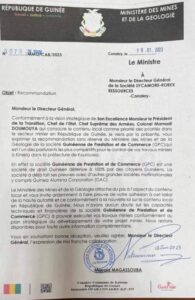 Ci-dessous lettre du ministre des mines adressée au directeur général
