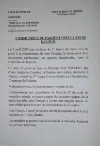 Chute d’Ibrahima Sory Soumah du 5ème étage : plusieurs guinéens et un libanais interpellés