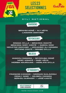 Football : Kaba Diawara dévoile la liste des 23 joueurs du Syli national qui vont affronter l’Égypte et le