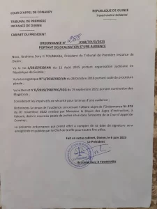 Dans une ordonnance consultée par notre rédaction ce mercredi 07 juin 2023, le juge Ibrahima Sory II Tounkara, a ordonné la tenue du procès.