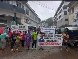 Munis des pancartes et des banderoles ces jeunes scandent des slogans tels que « nous proférons le troisième mandat d’Alpha Condé qu’à la dictature des putschistes » Ou encore « Transition Mandat Mara ! »