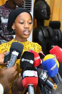 « Par ma voix, les filles de la Guinée réclament l’engagement des décideurs guinéens dont vous faites partie à mettre fin aux violences basées sur le genre, notamment le viol, le mariage précoce, l’excision, j’en passe, qui nous traumatise, nous use, nous sort des écoles et brisent nos opportunités de contribuer pleinement à l’essor de notre beau pays. Nous voulons que les filles et les jeunes de Guinée puissent étudier, prendre des positions de Leadership, décider et s’épanouir pour pouvoir jouer pleinement notre rôle et être enfin la force de la Guinée d’aujourd’hui et de demain », a-t-elle dit.