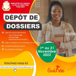 Conformément aux communiqués conjoints du Ministère du Travail et de la Fonction Publique, relatif au concours de recrutement à la fonction publique pour la session 2023, la plateforme d’inscription est ouverte à partir de ce mercredi 01 novembre 2023. Ce site est la plateforme sur laquelle, les candidats doivent déposer leur dossier de candidature. Trouvez ci-dessous le lien.