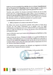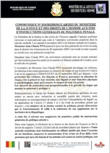 Dans un important communiqué publié dans la journée de ce mercredi 08 novembre 2023, le Ministre de la Justice et des Droits de l’Homme, Alphonse Charles Wright aurait prescrit à titre de récompense une somme de 500 000 000 GNF, à toute personne qui aurait aidé ou facilité l’arrestation de Monsieur Claude Pivi.