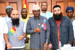 Au terme de deux semaines d’intenses activités caritatives, la délégation de la Fondation Al Mansour a été reçue en audience ce vendredi 10 novembre 2023 par le Président du CNT. Dr Dansa KOUROUMA a profité de l’occasion pour remercier M. Aly OSMAEV et ses collègues pour ce geste humanitaire à l’égard des populations guinéennes. Une initiative qui vient cimenter les relations de coopération entre la Guinée et la Tchétchénie.