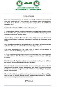 L’ANAD condamne énergiquement cette dérive liberticide de la junte guinéenne qui viole la Charte de la Transition et les engagements internationaux ratifiés par la Guinée.