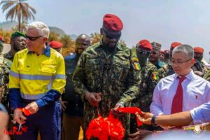 Après cette série d’interventions, le Président de la République, le Général Mamadi Doumbouya, a procédé à la coupure du ruban marquant la pose de la première poutre du chemin de fer de la compagnie Trans-Guinée.