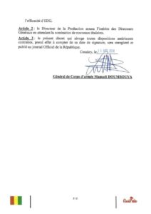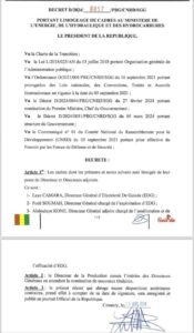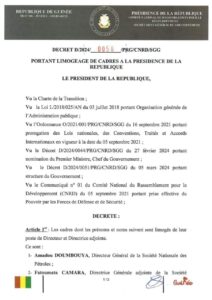 Dans un décret publié dans la journée du vendredi 16 mars 2023, le Président de la République a limogé les directeurs généraux de l’Agence Nationale d’Aménagement des Infrastructures Minières (ANAIM), dirigée par Mohamed Lappi Bangoura, le Directeur Général de la SONAP (Société Nationale des Pétroles) Amadou Doumbouya et son adjointe Fatoumata Camara. Ainsi que,  le Directeur général de l’Entreprise Électricité de Guinée (EDG) Laye Sekou Camara et ses deux adjoints, Fodé Soumah et Abdoulaye Koné.