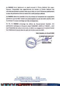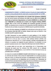 Le Conseil National des Organisations de la Société Civile Guinéenne (CNOSCG) est préoccupé par le taux de prévalence élevée dans les MGF.